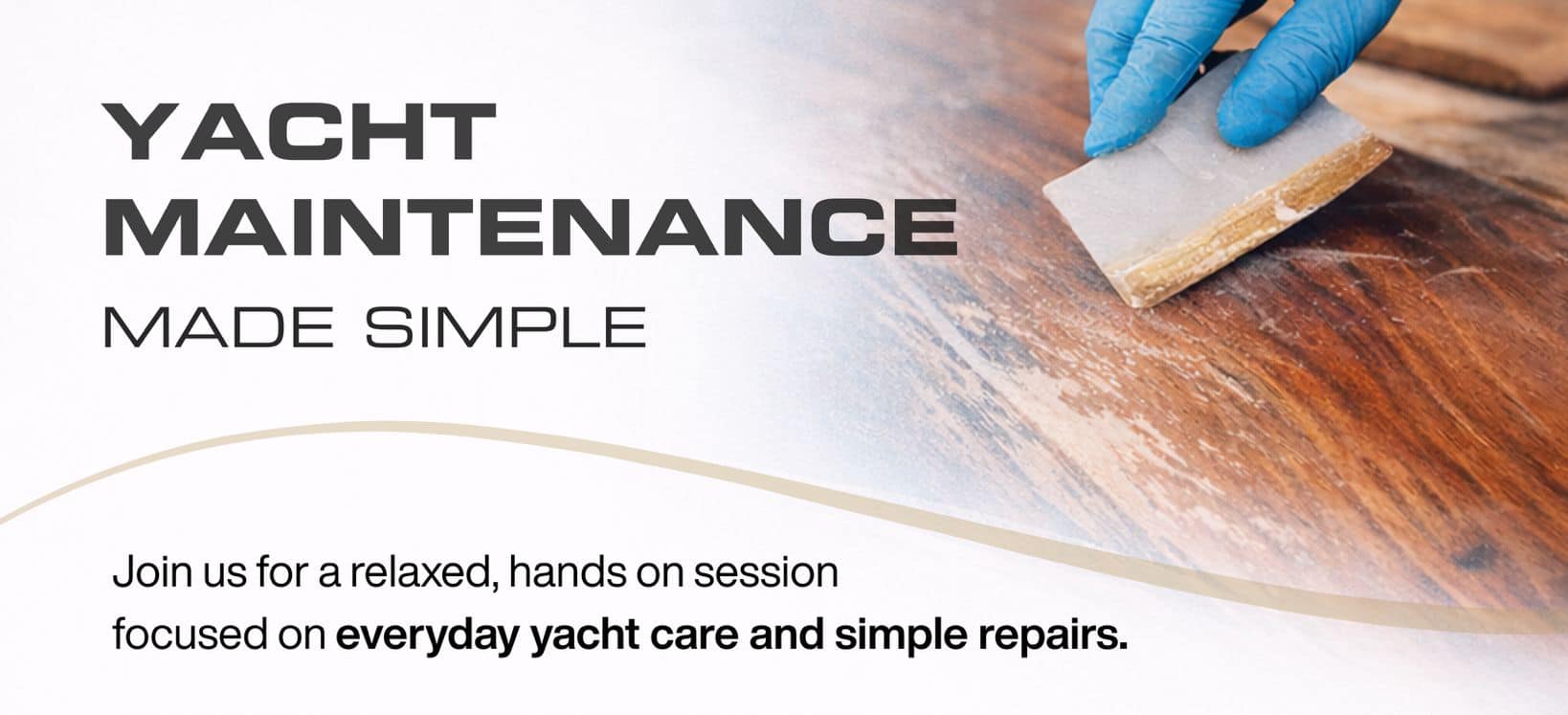 Join us for a relaxed, hands-on session focused on everyday yacht care and simple repairs. Designed to be practical, accessible and informative, this workshop is ideal for yacht owners and crew looking to build confidence in routine maintenance and basic upkeep.